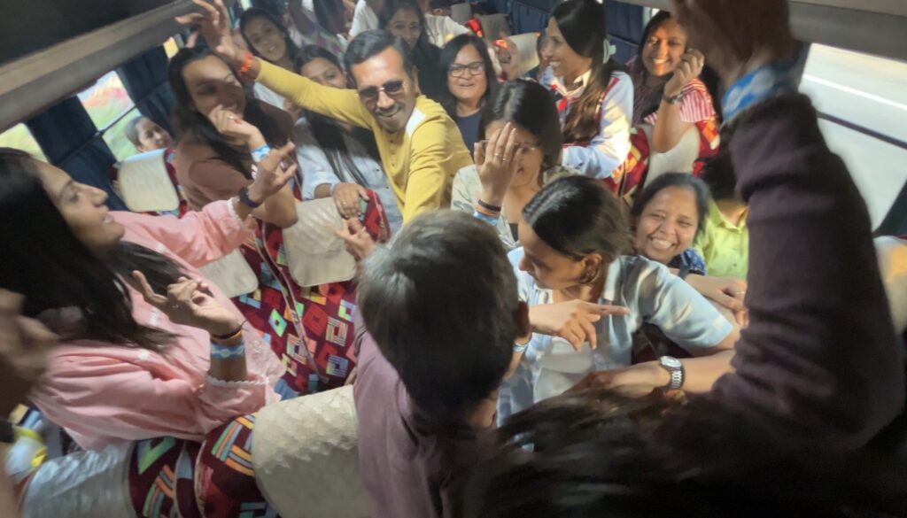 At 8:30 a.m., all of us boarded a bus headed to a resort nearly fifty kilometers away. The mood? Instantly celebratory. Conversations that usually happen across workstations now flowed across bus seats. What began as light banter slowly evolved into a full-blown antakshari battle, because no Indian bus journey is ever complete without one.